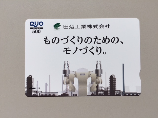 「ものづくりのための、モノづくり。」という言葉が入ったオリジナルデザインのクオカード。2017年9月分、2018年3月分ともに同じデザインでした。