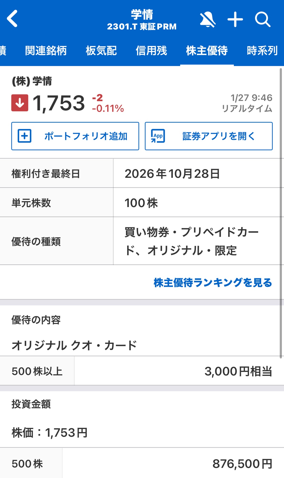 学情から株主優待 未分類 X Facebook はてブ Pocket LINE コピー 2026.01.27 スポンサーリンク スポンサーリンク スポンサーリンク 学情から株主優待到着 500株でクオカード3000円 1000円のクオカードが3枚で3000円です