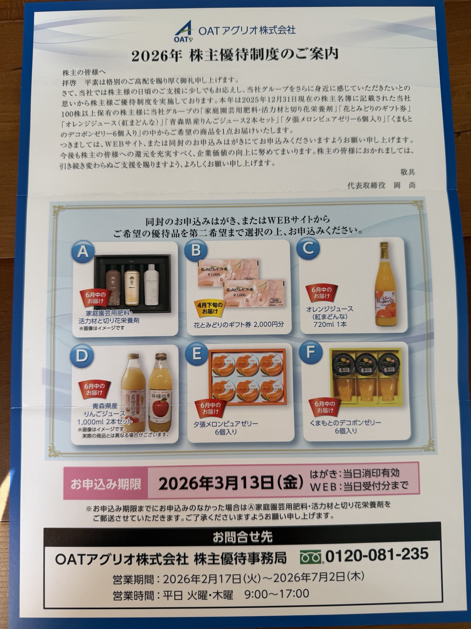 6つの選択肢があります。花とみどりのギフト券が換金性があり、この中では良さそうです。