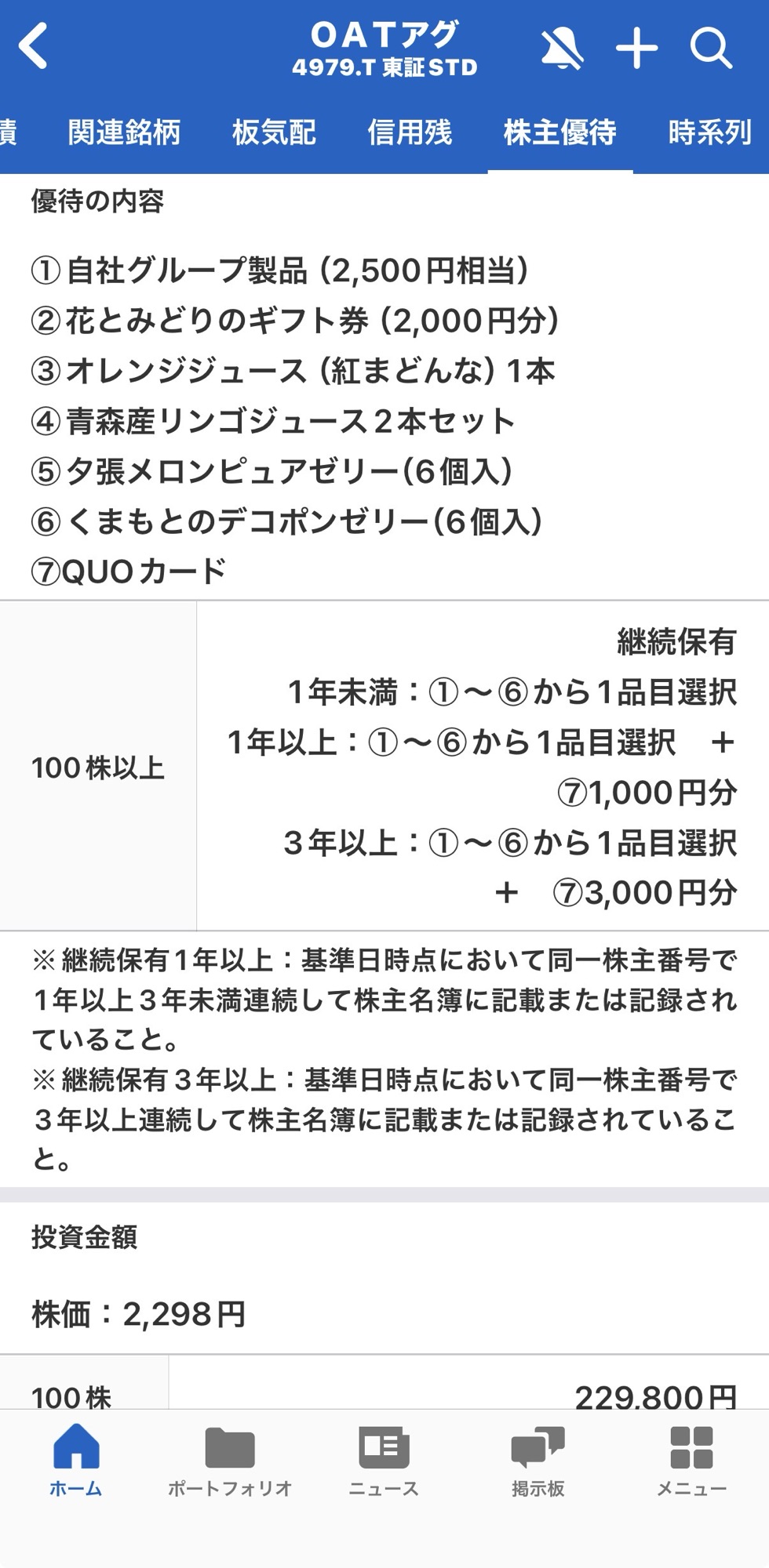 1年以上の継続保有でクオカードももらえます。そして、3年以上だと増額です。